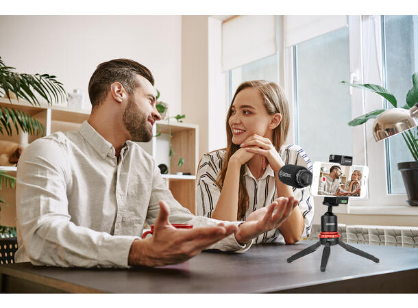 Omnidireksjonell kondensator mikrofon med Clip-On løsning for feste rett på telefon/nettbrett.