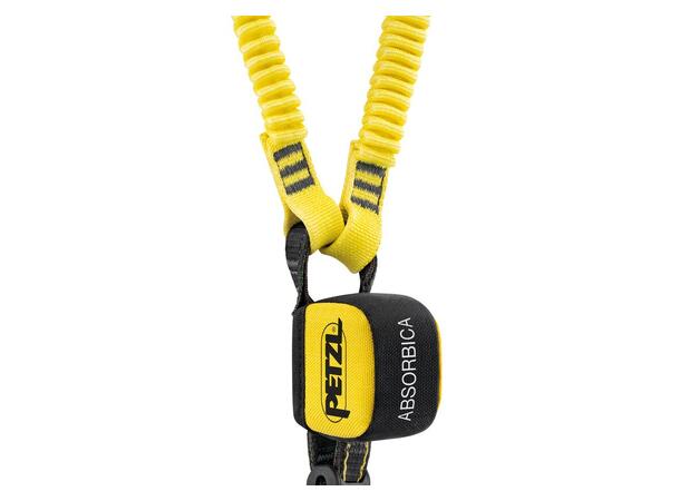 ABSORBICA-Y 150 is a double lanyard with a compact energy absorber, designed for progression on a vertical structure or a horizontal lifeline, and for passing intermediate anchors. It works with users who weigh between 60 and 140 kg. It has several connection options on the harness and can be used with different types of connectors.