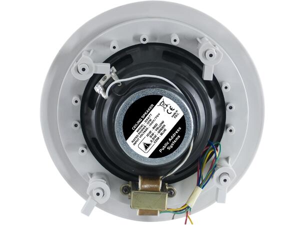 Ceiling speaker for recessed mounting, ideal for vocal announcements and reproduction of background music.