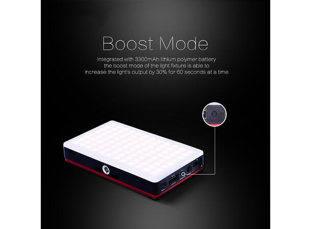 Praktisk og kompakt batteridrevet LED lys, med justerbar fargetemperatur og booster mode for ekstra output. Leveres med hot shoe, mobilholder, diffuser, mini tripod og ladekabel.